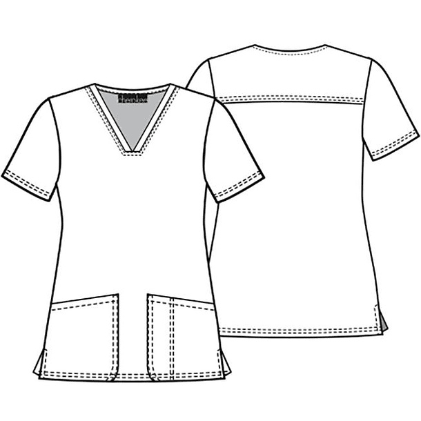 Esta elegante polera estampada cuenta con cuello en V y costuras de princesa en la parte delantera y trasera que da una forma favorecedora para quien la ocupe!. También cuenta con bolsillos delanteros adornados.